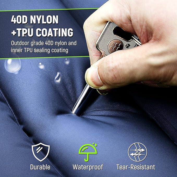 • 【Sturdy & Durable, Conquer Rocky Terrain】Made with the strongest outdoor-grade material, Myxslop insulated camping mat making it virtually puncture-proof against sharp rocks, sticks, and uneven terrain. Whether you're hammock camping, backpacking short trips, or exploring the backcountry, this pad delivers unmatched durability and comfort—so you can rest easy in the wild.