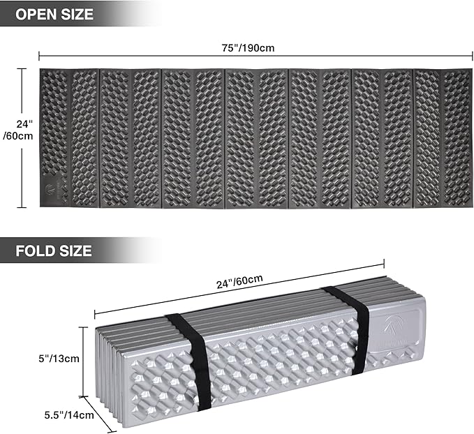 - Rugged Construction for Long-Term Use Featuring precision-cut edges to prevent fraying and dense foam base for ground protection, this pad resists punctures from rocks or twigs. The easy-to-clean surface repels dirt, and the compact storage strap ensures hassle-free packing—trusted by backpackers for its balance of comfort and trail-ready durability.