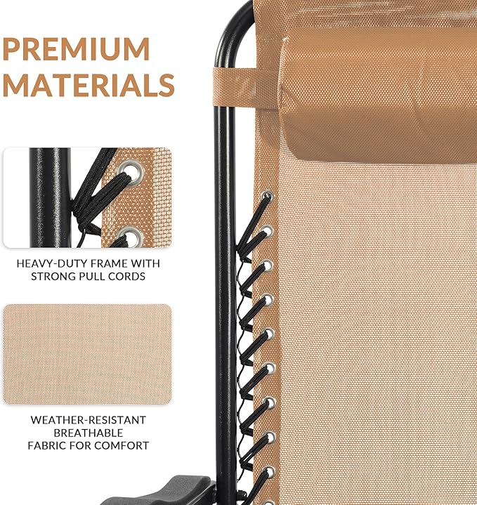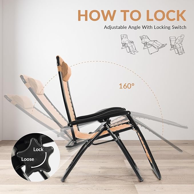 - Superior Comfort: Zero gravity chairs set of 2 are engineered to provide the ultimate relaxation experience, supporting up to 300 pounds. With dimensions of 43.5" x 25.5" x 35.5" when open. With the elastic buttons on both sides of the chair allows you to find your perfect position, whether you want to sit upright or lie back completely. Includes removable pillow, perfect for camping chairs, patio chairs, and even beach chairs, this chair helps you unwind effortlessly