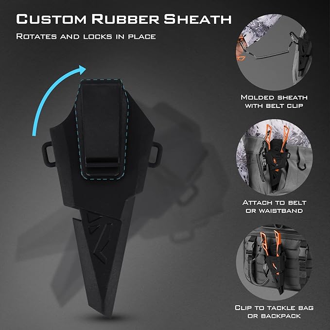 - NON-SLIP HANDLE & SHEATH: The rubber handles prevent slipping in your hand and are spring loaded. We include a custom molded rubber sheath with a belt clip that ensures your investment is protected from normal wear and tear. The coiled lanyard ensures your pliers don’t fall overboard
