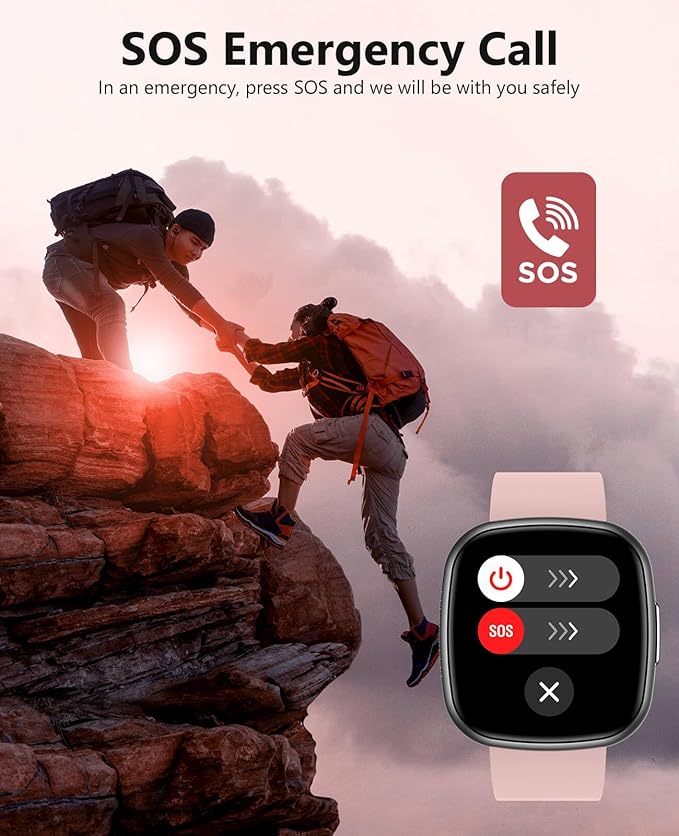 - SOS EMERGENCY CALL AND SMART VOICE ASSISTANT—Stay safe and connected with the SOS emergency call feature on this smartwatch—it sends a distress alert when you need help the most. It also features a built-in smart voice assistant, allowing you to control your phone hands-free. Set alarms and reminders, check the weather, play music, and more—just by using your voice. A smarter and safer way to manage your day.