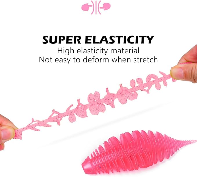 - Unique Ribbing Design: The soft plastic fishing lures with ribbed body from head to tail to create mouthwatering action. These ribs in shape that's the key it gives lots of action. The design has great traction, the durability of soft plastic move more water and create more waves from water displacement, to make more action underwater and invite to nearby fish.