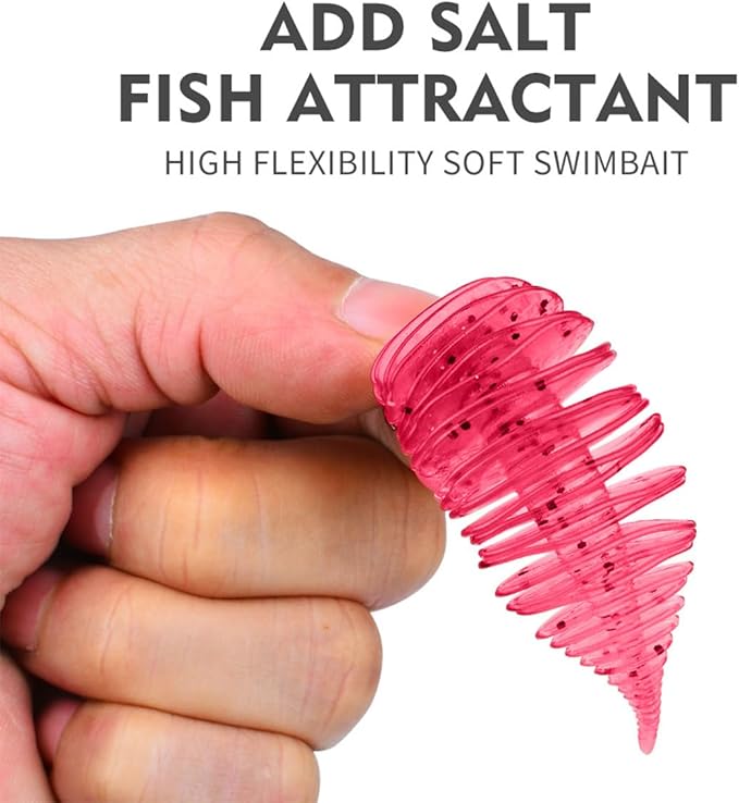 - Versatile Soft Swimbait: Each soft lure has colorful glitter makes soft lures more attractive, so it will stand out from all of the rest with a refined design that translates to lifelike action. And it has a strong enough body so they don't fall apart as they're getting smashed by largemouth. At the same time the supple yet durable plastic allows the tail to kick and flutter with enthusiasm at any retrieval speed, even on a weightless fall.