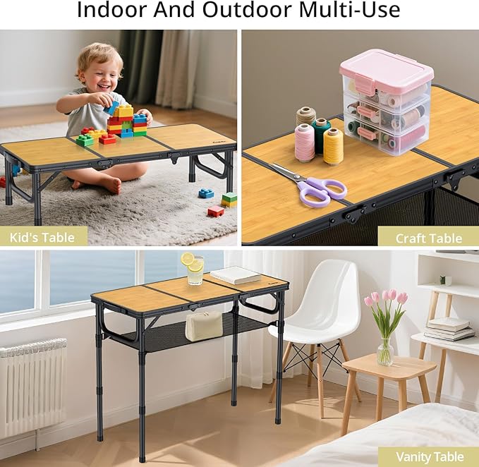 - Multifunctional Table for Various Occasions: This 3ft folding table is perfect for outdoor and indoor use. It can be used as BBQ grill side table, picnic table, card games table, fishing table, tailgate table, serving table for dining, working and study table for adult and kids