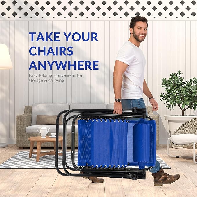 - Versatile Usage: Whether you’re relaxing by the pool, enjoying a camping trip, or hosting a backyard barbecue, our folding chairs adapts to any setting. The modern design enhances your outdoor decor, making it a stylish addition to your space. With built-in cup holders, you can keep your favorite drinks at hand, ensuring you stay refreshed while you lounge. Versatile enough to serve as outside furniture or indoor furniture, it’s perfect for gatherings with friends and family