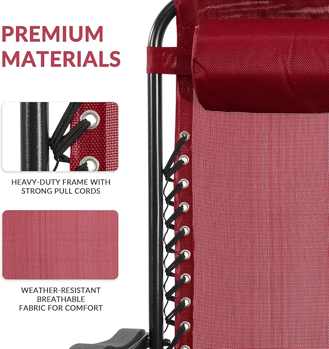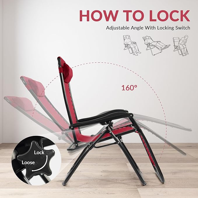 - Superior Comfort: Zero gravity chairs set of 2 are engineered to provide the ultimate relaxation experience, supporting up to 300 pounds. With dimensions of 43.5" x 25.5" x 35.5" when open. With the elastic buttons on both sides of the chair allows you to find your perfect position, whether you want to sit upright or lie back completely. Includes removable pillow, perfect for camping chairs, patio chairs, and even beach chairs, this chair helps you unwind effortlessly