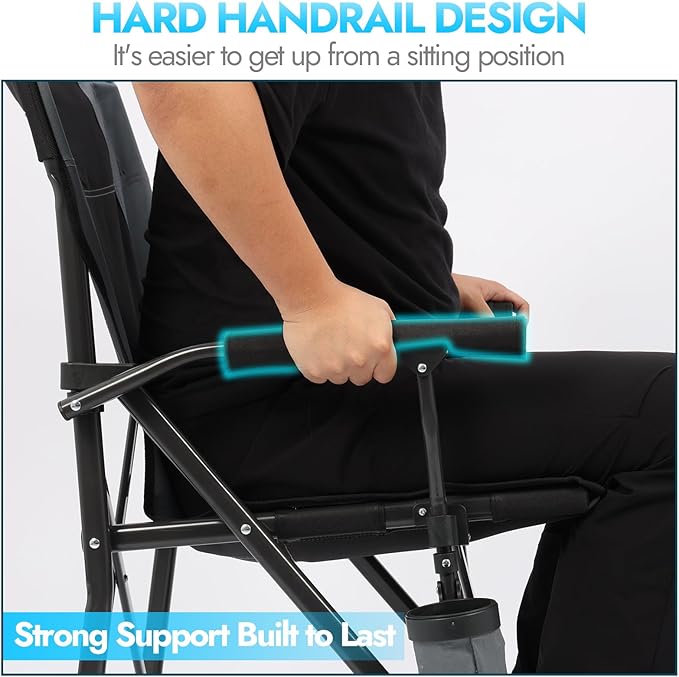 Oversized Folding Camping Chair for Adults, Supports 450 LBS Camping Chairs, Heavy Duty Camping Chair with Side Pockets, Foldable Outdoor Chair for Camping, Beach, Fishing, Hiking, Black-Gray
