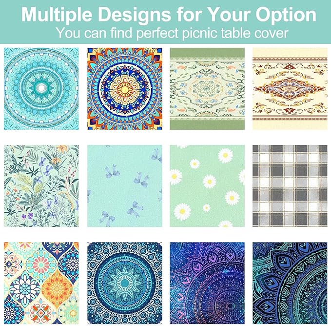 - 【EASY INSTALL & WINDPROOF】Both table cover and bench cover designed with half around elastic, not only can prevent unexpected movements and stay firm in windy conditions, but also easy to install and uninstall by yourself, so your happy picnic time won't be disturbed.