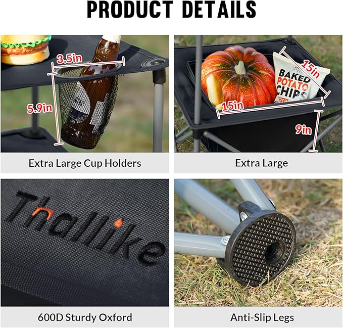 - 【Versatile Folding Camping Table】The THALLIKE Lightweight Folding Camping Table is ideal for anyone want an all-in-one setup for outdoor use. Perfect for a variety of outdoor activities, including trips to the beach, camping adventures, barbecues, party, fishing excursions, or hiking journeys.