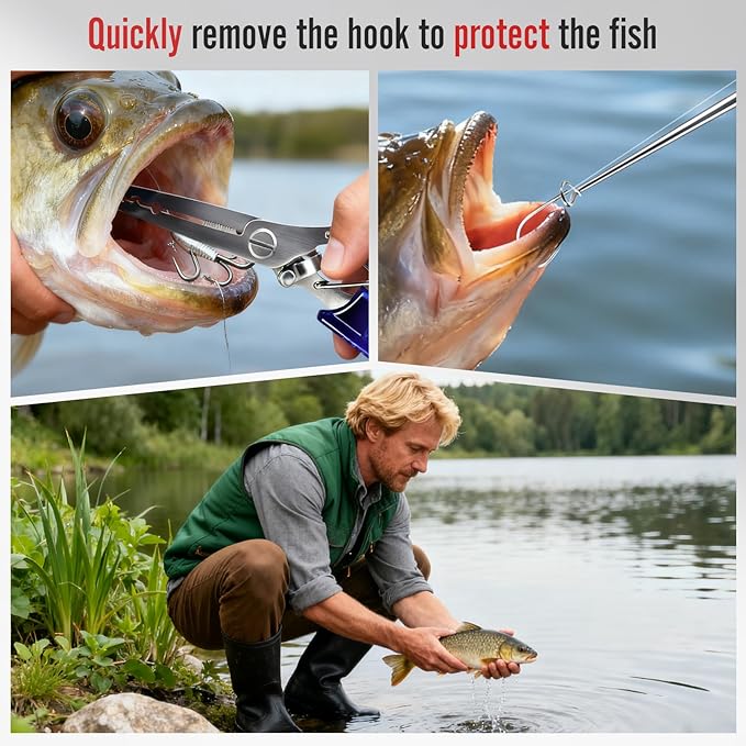 - Quick & Safe Hook Removal: Designed to reach deep into fish mouths while protecting your hands, our fish hook removers make catch-and-release smooth and safe every time.